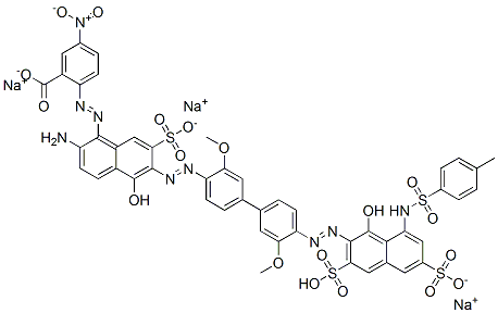Benzoic acid, 2-[[2-amino-5-hydroxy-6-[[4'-[[1-hydroxy-8-[[(4-methylphenyl)sulfonyl]amino]-3,6-disulfo-2-naphthalenyl]azo]-3,3'-dimethoxy[1,1'-biphenyl]-4-yl]azo]-7-sulfo-1-naphthalenyl]azo]-5-nitro-, trisodium salt