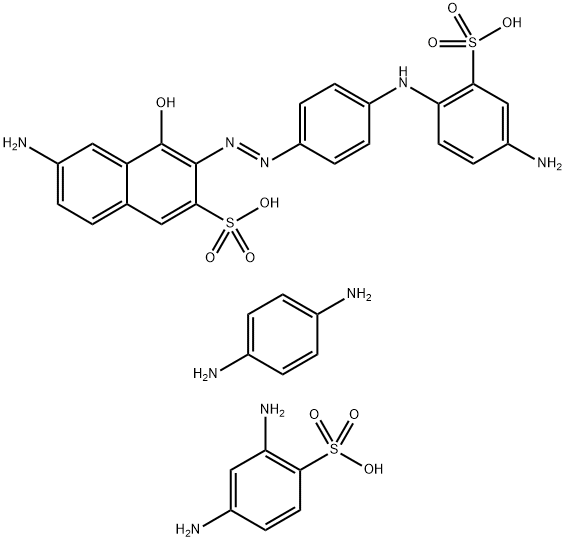 2-Naphthalenesulfonic acid, 6-amino-3-[[4-[(4-amino-2-sulfophenyl)amino]phenyl]azo]-4-hydroxy-, diazotized, coupled with 2,4-diaminobenzenesulfonic acid and p-phenylenediamine