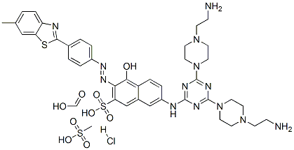 2-Naphthalenesulfonic acid, 7-[[4,6-bis[4-(2-aminoethyl)-1-piperazinyl]-1,3,5-triazin-2-yl]amino]-4-hydroxy-3-[[4-(6-methyl-2-benzothiazolyl)phenyl]azo]-, formate (salt) hydrochloride methanesulfonate (salt)