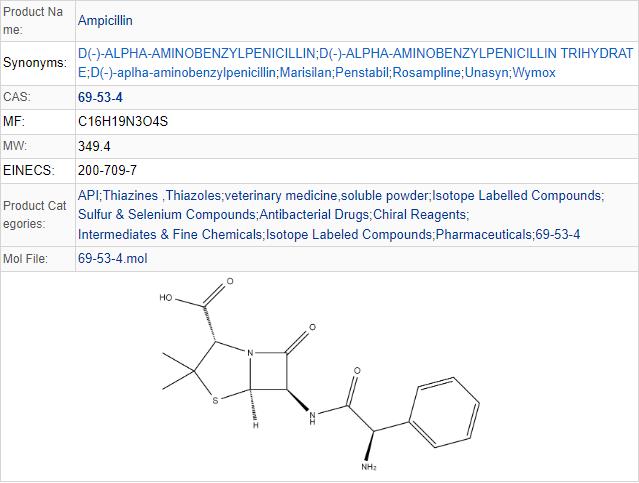 | Product Name: Ampicillin | CAS No.: 69-53-4 |
