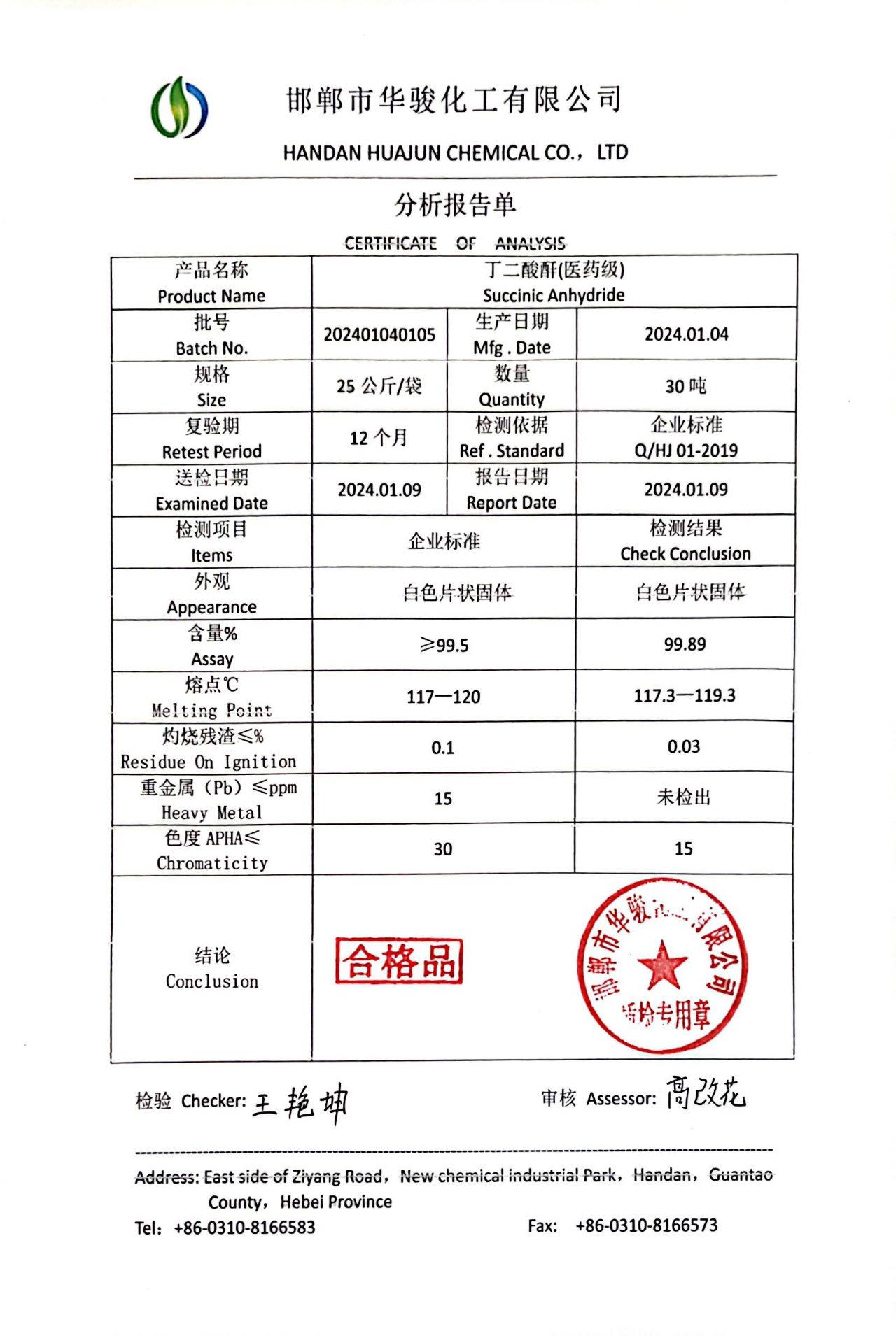 | Product Name: Succinic anhydride | CAS No.: 108-30-5 |
