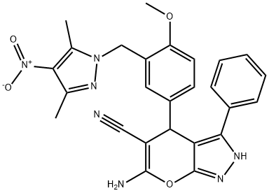 6-amino-4-[3-({4-nitro-3,5-dimethyl-1H-pyrazol-1-yl}methyl)-4-methoxyphenyl]-3-phenyl-1,4-dihydropyrano[2,3-c]pyrazole-5-carbonitrile