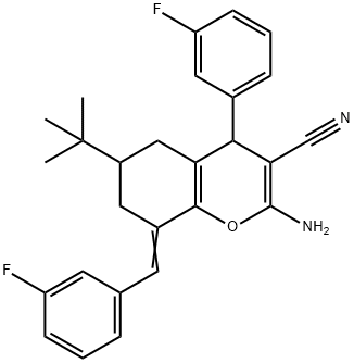 2-amino-6-tert-butyl-8-(3-fluorobenzylidene)-4-(3-fluorophenyl)-5,6,7,8-tetrahydro-4H-chromene-3-carbonitrile