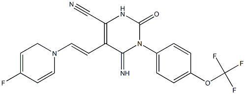 5-(1-Aza-2-(4-fluorophenyl)vinyl)-4-imino-2-oxo-3-(4-(trifluoromethoxy)phenyl)-1H-1,3-diazine-6-carbonitrile