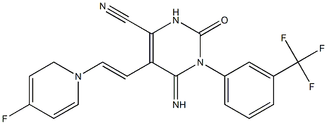 5-(1-Aza-2-(4-fluorophenyl)vinyl)-4-imino-2-oxo-3-(3-(trifluoromethyl)phenyl)-1H-1,3-diazine-6-carbonitrile