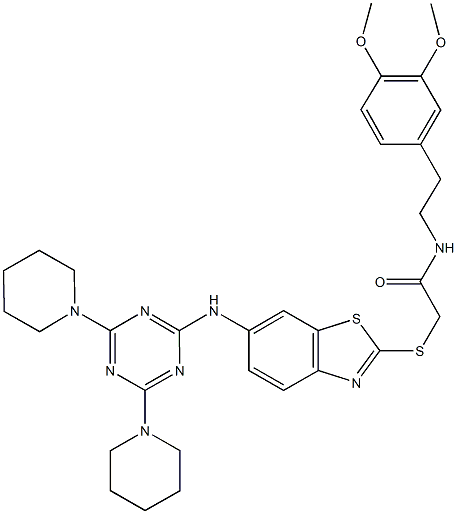 N-[2-(3,4-dimethoxyphenyl)ethyl]-2-[(6-{[4,6-di(1-piperidinyl)-1,3,5-triazin-2-yl]amino}-1,3-benzothiazol-2-yl)sulfanyl]acetamide