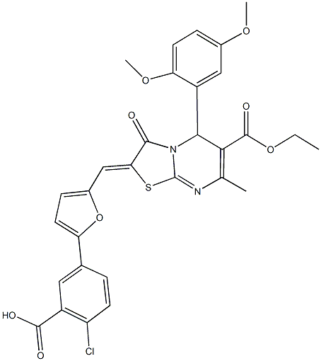 2-chloro-5-{5-[(5-(2,5-dimethoxyphenyl)-6-(ethoxycarbonyl)-7-methyl-3-oxo-5H-[1,3]thiazolo[3,2-a]pyrimidin-2(3H)-ylidene)methyl]-2-furyl}benzoic acid