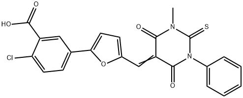 2-chloro-5-{5-[(1-methyl-4,6-dioxo-3-phenyl-2-thioxotetrahydro-5(2H)-pyrimidinylidene)methyl]-2-furyl}benzoic acid
