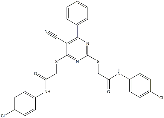2-[(2-{[2-(4-chloroanilino)-2-oxoethyl]sulfanyl}-5-cyano-6-phenyl-4-pyrimidinyl)sulfanyl]-N-(4-chlorophenyl)acetamide