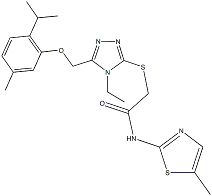 2-({4-ethyl-5-[(2-isopropyl-5-methylphenoxy)methyl]-4H-1,2,4-triazol-3-yl}sulfanyl)-N-(5-methyl-1,3-thiazol-2-yl)acetamide