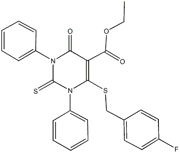 ethyl 6-[(4-fluorobenzyl)sulfanyl]-4-oxo-1,3-diphenyl-2-thioxo-1,2,3,4-tetrahydro-5-pyrimidinecarboxylate