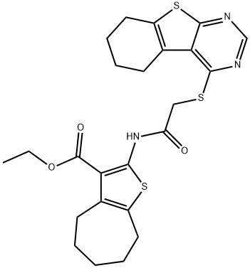ethyl 2-({[(5-{[(4,6-dimethyl-2-pyrimidinyl)sulfanyl]methyl}-1,3,4-oxadiazol-2-yl)sulfanyl]acetyl}amino)-4,5,6,7-tetrahydro-1-benzothiophene-3-carboxylate