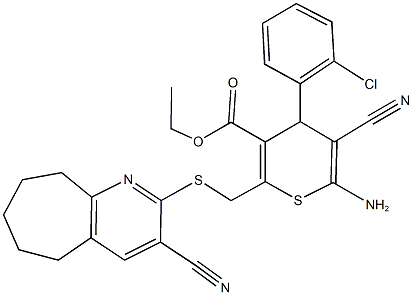 ethyl 6-amino-4-(2-chlorophenyl)-5-cyano-2-{[(3-cyano-6,7,8,9-tetrahydro-5H-cyclohepta[b]pyridin-2-yl)sulfanyl]methyl}-4H-thiopyran-3-carboxylate