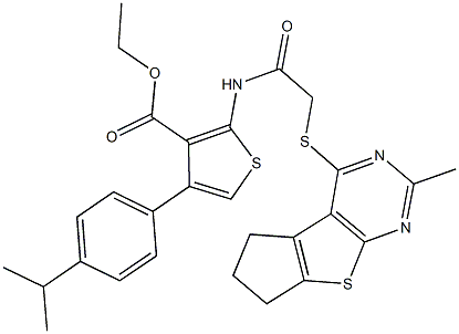 ethyl 4-(4-isopropylphenyl)-2-({[(2-methyl-6,7-dihydro-5H-cyclopenta[4,5]thieno[2,3-d]pyrimidin-4-yl)sulfanyl]acetyl}amino)thiophene-3-carboxylate