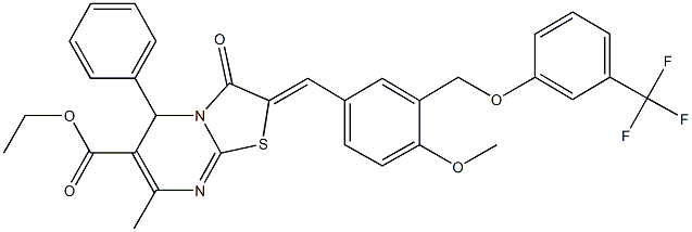 ethyl 2-(4-methoxy-3-{[3-(trifluoromethyl)phenoxy]methyl}benzylidene)-7-methyl-3-oxo-5-phenyl-2,3-dihydro-5H-[1,3]thiazolo[3,2-a]pyrimidine-6-carboxylate