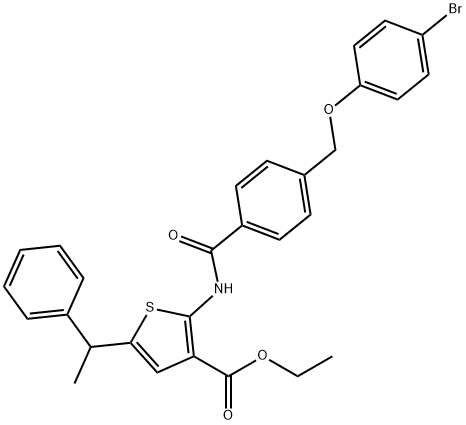 ethyl 2-({4-[(4-bromophenoxy)methyl]benzoyl}amino)-5-(1-phenylethyl)-3-thiophenecarboxylate