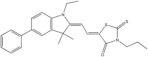 5-[2-(1-ethyl-3,3-dimethyl-5-phenyl-1,3-dihydro-2H-indol-2-ylidene)ethylidene]-3-propyl-2-thioxo-1,3-thiazolidin-4-one