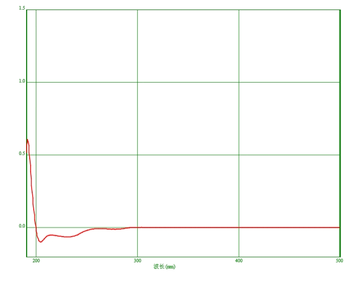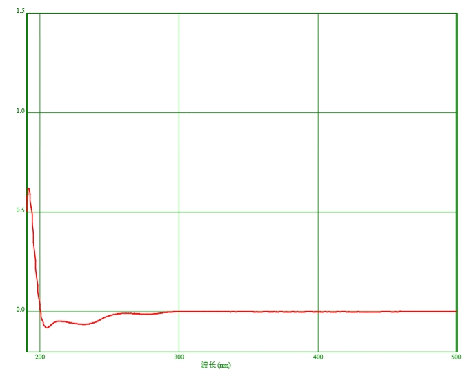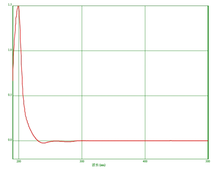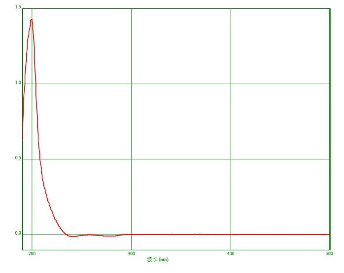 吸光度:取本品,以水为空白,照紫外-可见分光光度法(通则0401)测定。在210nm、220nm、230nm、240nm及250nm的波长处,吸光度分别不得过0.70、0.30、0.13、0.07、0.02,在260~400nm的范围内,吸光度不得过0.01。