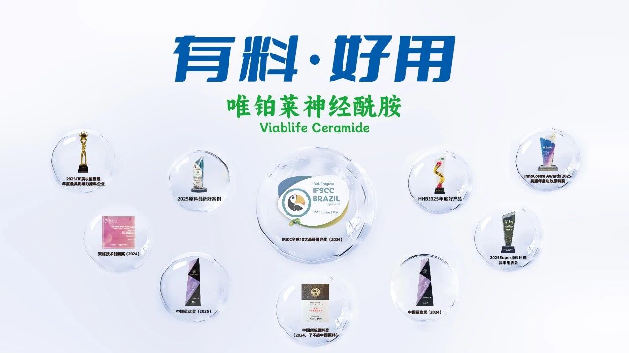 最终,唯铂莱神经酰胺NP凭借其卓越的综合实力脱颖而出,成功获选2025SUPER原料评选「十佳原料」!