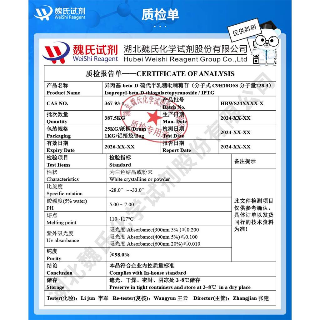 作用:用于外贸出口、科学研究和化学试剂等领域 储存:遮光干燥密封储存