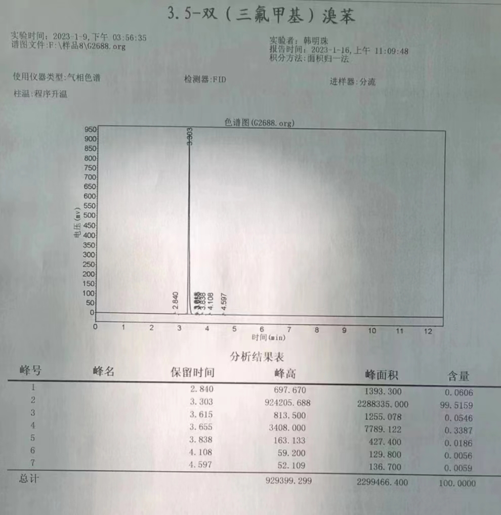 关键字: 3,5-双三氟甲基溴苯源头厂家;328-70-1;3,5-双三氟甲基溴苯现货;3,5-双三氟甲基溴苯厂家;3,5-双三氟甲基溴苯价格;
