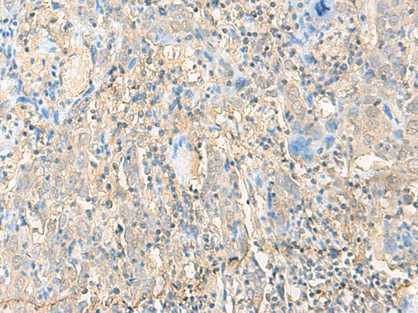 The image is immunohistochemistry of paraffin-embedded Human cervical cancer tissue using (HLA-A/F/H Antibody) at dilution 1/20. (Original magnification: ×200)