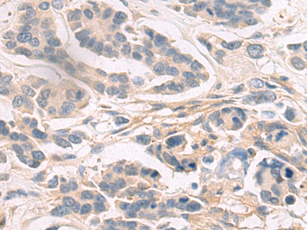 The image is immunohistochemistry of paraffin-embedded Human cervical cancer tissue using (HOXB1 Antibody) at dilution 1/50. (Original magnification: ×200)
