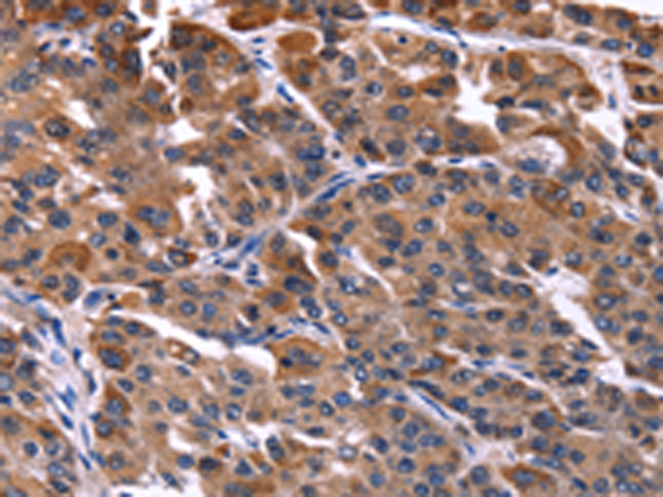 The image is immunohistochemistry of paraffin-embedded Human liver cancer tissue using (NFATC3 Antibody) at dilution 1/50. (Original magnification: ×200)
