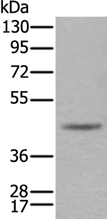 Gel: 8%SDS-PAGE, Lysate: 40 μg, Lane: 293T cell lysate, Primary antibody: (CAMK1D Antibody) at dilution 1/400, Secondary antibody: Goat anti rabbit IgG at 1/8000 dilution, Exposure time: 30 seconds