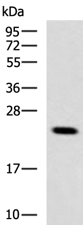 Gel: 12%SDS-PAGE, Lysate: 40 μg, Lane: SKOV3 cell lysate, Primary antibody: (FGF18 Antibody) at dilution 1/1000, Secondary antibody: Goat anti rabbit IgG at 1/5000 dilution, Exposure time: 30 seconds