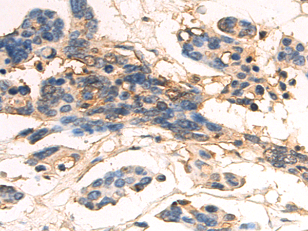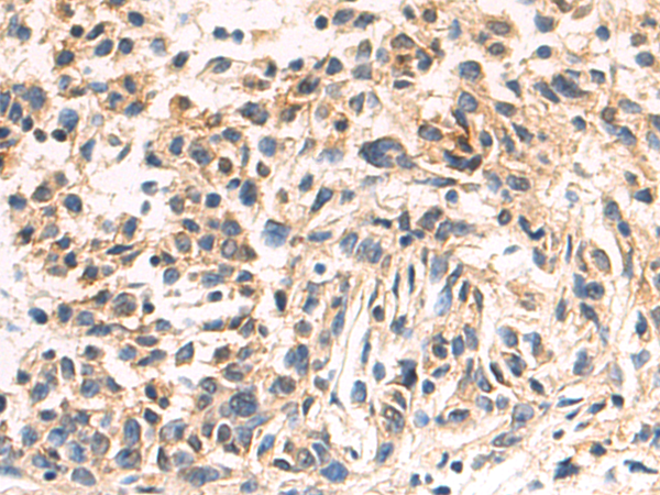 The image is immunohistochemistry of paraffin-embedded Human cervical cancer tissue using (FGF18 Antibody) at dilution 1/70. (Original magnification: ×200)