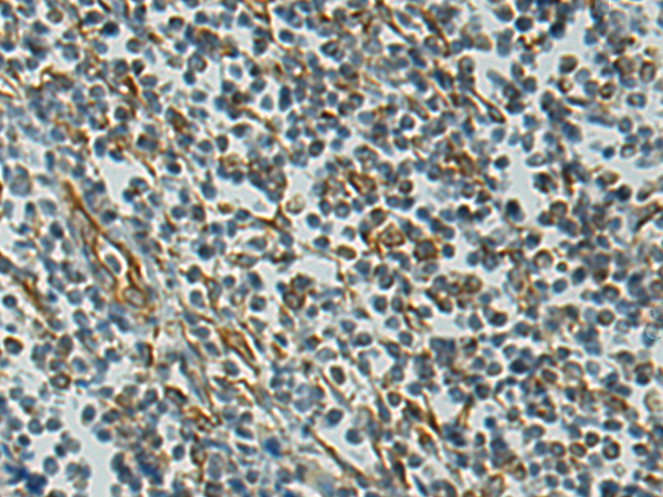 The image is immunohistochemistry of paraffin-embedded Human tonsil tissue using (VPS39 Antibody) at dilution 1/150. (Original magnification: ×200)