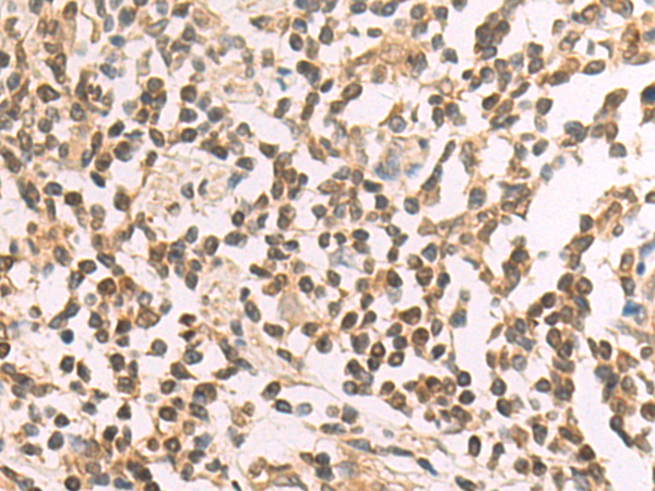The image is immunohistochemistry of paraffin-embedded Human cervical cancer tissue using (POLR2D Antibody) at dilution 1/80. (Original magnification: ×200)