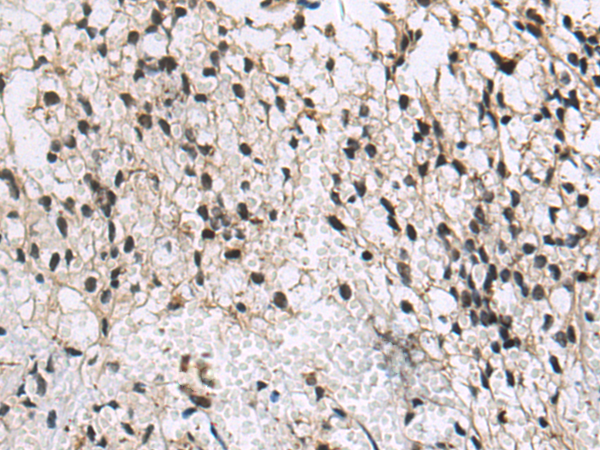 The image is immunohistochemistry of paraffin-embedded Human prostate cancer tissue using (DDX24 Antibody) at dilution 1/70. (Original magnification: ×200)