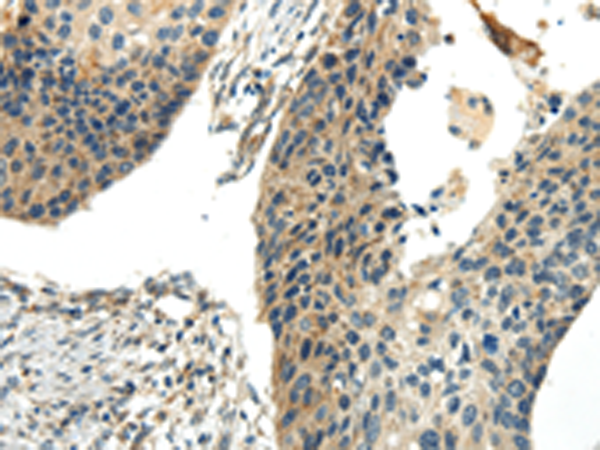 The image is immunohistochemistry of paraffin-embedded Human esophagus cancer tissue using (CHGB Antibody) at dilution 1/30. (Original magnification: ×200)