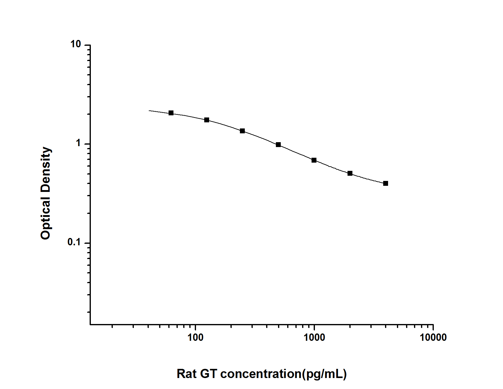 为了进行计算,请对每个参考标准品和每个样品的OD450重复读数取平均值,然后减去平均对照(零)OD450读数。可以将标准曲线绘制为每种参考标准溶液的相对OD450 [Y]与每种标准溶液各自的浓度(X)的关系。样品的GT浓度可以从标准曲线内插。