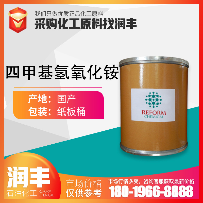 用途:在有机硅方面,作为二甲基硅油,苯甲基硅油,有机硅扩散泵油,无溶剂有硅模塑料,有机硅树脂硅橡胶等的催化剂。在分析方面,作为极谱试剂,在产品提纯方面作为无灰碱用以沉淀许多金属元素,在有机硅片生产中常用作计算机硅片面用光亮剂、清洗剂和触刻剂等。本产为有机硅聚合中的催化剂。其优点是:它具有强碱性,在不超过分解点的温度下稳定。超过分解点时迅速分解为三甲胺和甲醇。当催化完毕后很容易除掉,不留任何残渣。对有机硅产品无污染。因此又称为“暂时催化剂”。在分析中可用于极谱试及用来沉淀不含灰份的许多元素的氢化物。